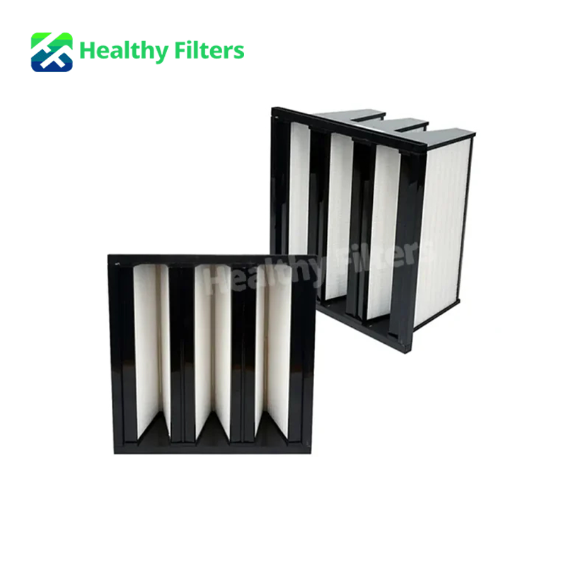1. Increased Surface Area: The V-shaped design maximizes the filter surface area within a compact frame, allowing for more media to capture particles and enhancing the filter’s dust-holding capacity.