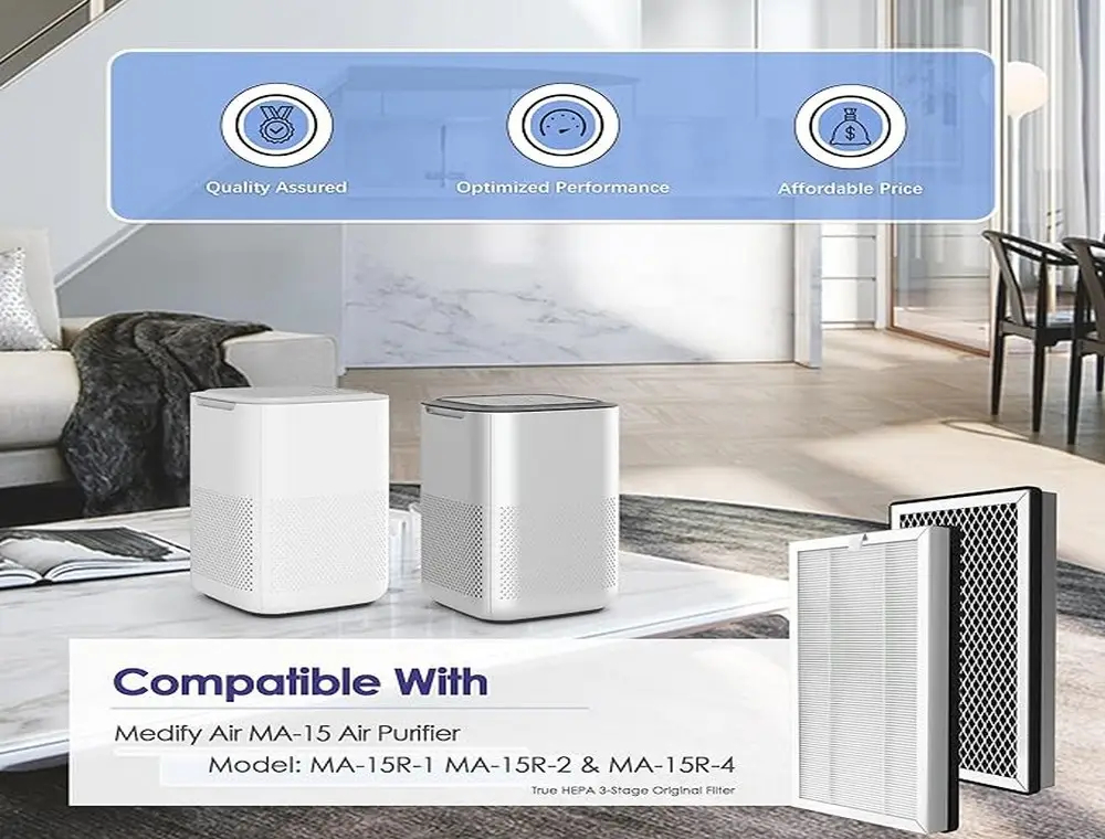 Replacement Filter Compatible with Medify Air MA-15 Air Purifier and 3-in-1 Composite Filtration with H13 True HEPA Filter.This type of filter can theoretically remove at least 99.9% of dust, pollen, mold, bacteria, and other airborne particles as small as 0.3 microns (µm). By capturing these microscopic pollutants, the Medify MA-15 significantly improves indoor air quality, making it ideal for homes, offices, and other environments where clean air is crucial.