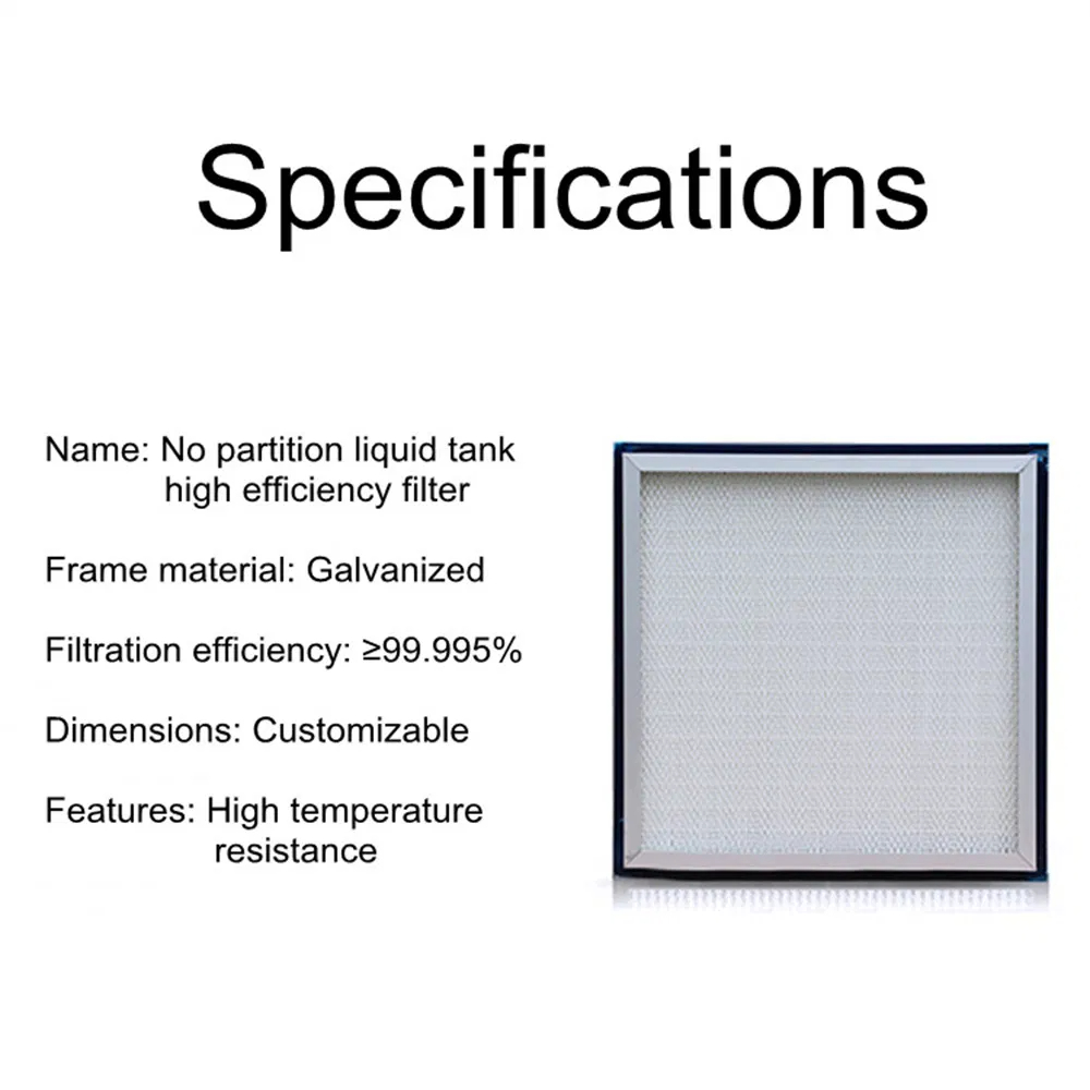 Employing high-quality glass fiber for the filtration element, sealed with a unique concrete interface agent, ensures exceptional performance. With a filtration efficiency exceeding 99.99% for particles as small as 0.3 micrometers, this filter stands as a reliable choice for various applications requiring stringent air quality standards.