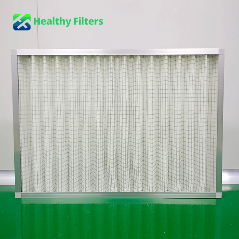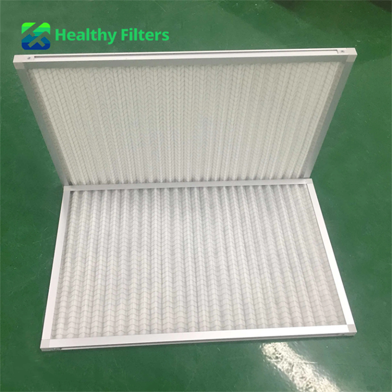 It uses filter materials such as non-woven fabric, nylon mesh, fiberglass, synthetic fibers, with a metal wire composite or embedded metal skeleton or double-sided wire frame to create a panel structure, preventing deformation due to excessive wind pressure.