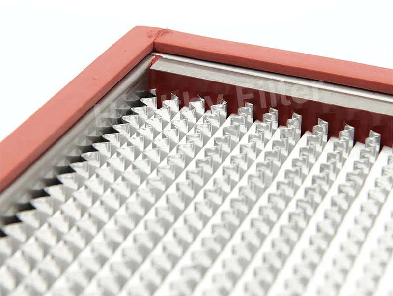 The Healthy Filter high-temperature resistant filter uses ultra-fine glass fiber material as the filter material, with a filtration efficiency of 99.97% and 99.99% (sodium flame method)/H10/H11/H12 (EN1822). The outer frame is made of stainless steel material, using 0.03mm thick aluminum foil circular corrugated grooves as separators, and sealed with high-temperature resistant silicone sealant. Temperature resistance of 300 ºC (constant temperature), mainly used for specialized cleaning equipment with high temperature requirements, such as disinfection cabinets, dryers, etc. This product has the characteristics of high efficiency, low resistance, and high temperature resistance.