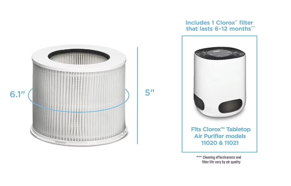 ● With the Clorox Tabletop True HEPA Replacement Filter, you can breathe easier. It has True HEPA filtration to capture 99.97%* of