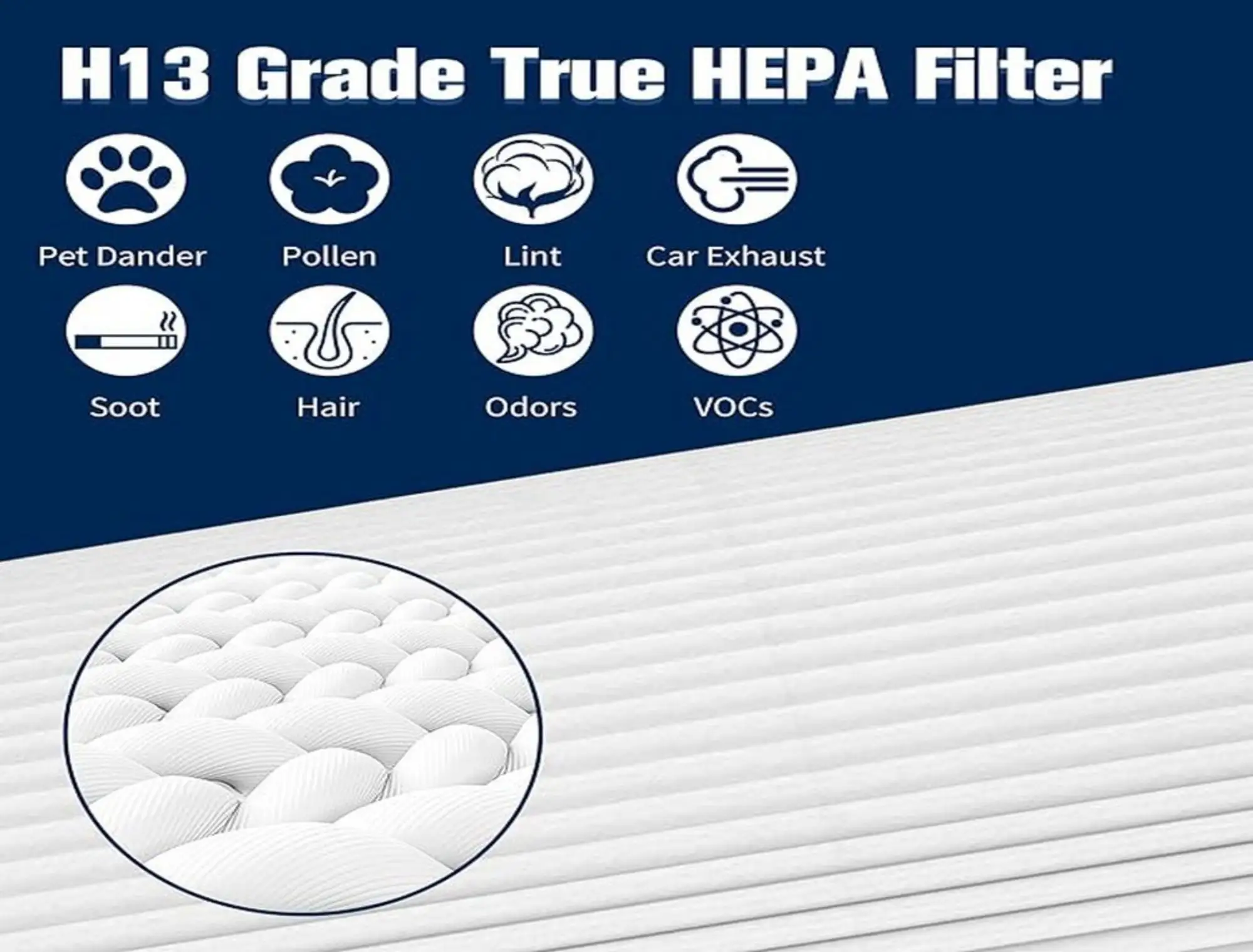 ● Blue Pure 311i Max Replacement Filter for Blue Pure 311i Max Air Purifier is H13 True HEPA certified, effectively capturing a remarkable 99.97% of particles as small as 0.1 microns, and cleans pet dander, pollen, and dust. The activated carbon filter efficiently tackles household odors and harmful gases, safeguards you from household odors