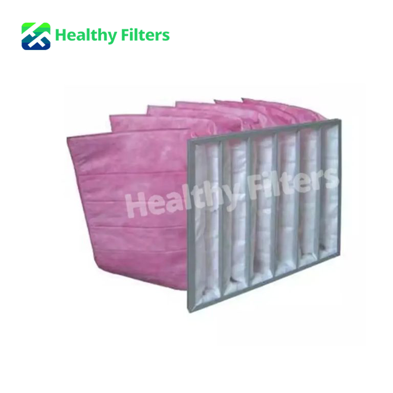 Bag filter material is made of polyester fiber nonwoven fabric, meltblown nonwoven fabric and other materials ultrasonically fused, improved the production process of the old filter bag in the past, the use of multi-layer filtration materials, in order to achieve the step-by-step filtration, so that the filter bag to send wind more uniformly, with less resistance, longer service life, and made of the filter is more beautiful and practical.