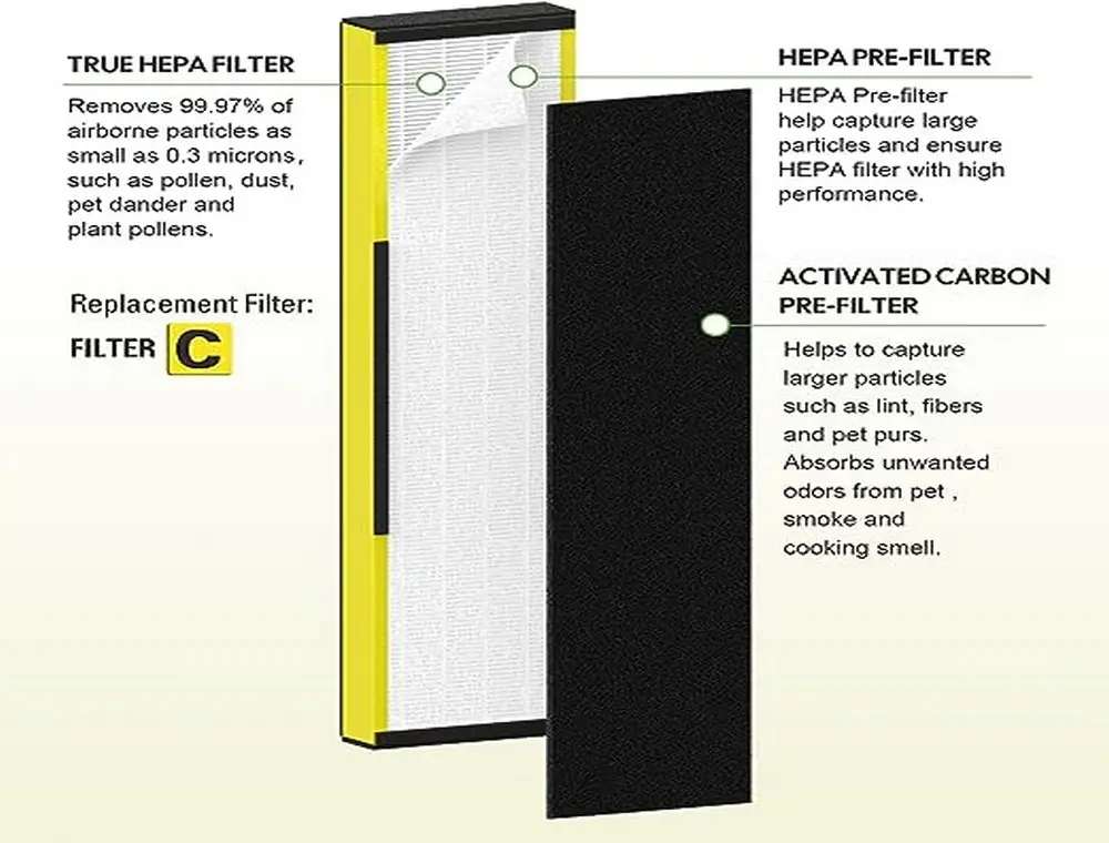Replacement Filter C for GermGuardian AC5000E, AC5250PT, AC5300B, AC5350B, CDAP5500, and More |